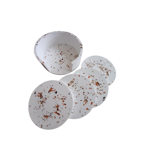 Terazzo look 0nderzetters (4) met handige houder.