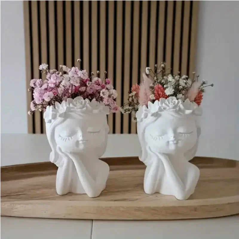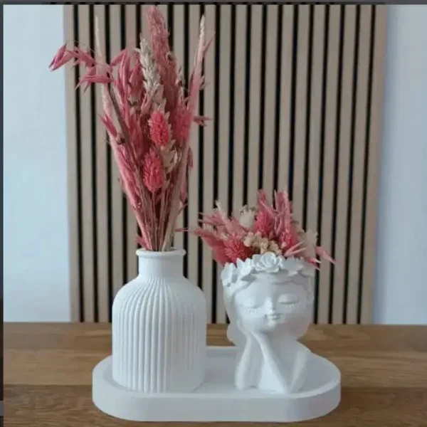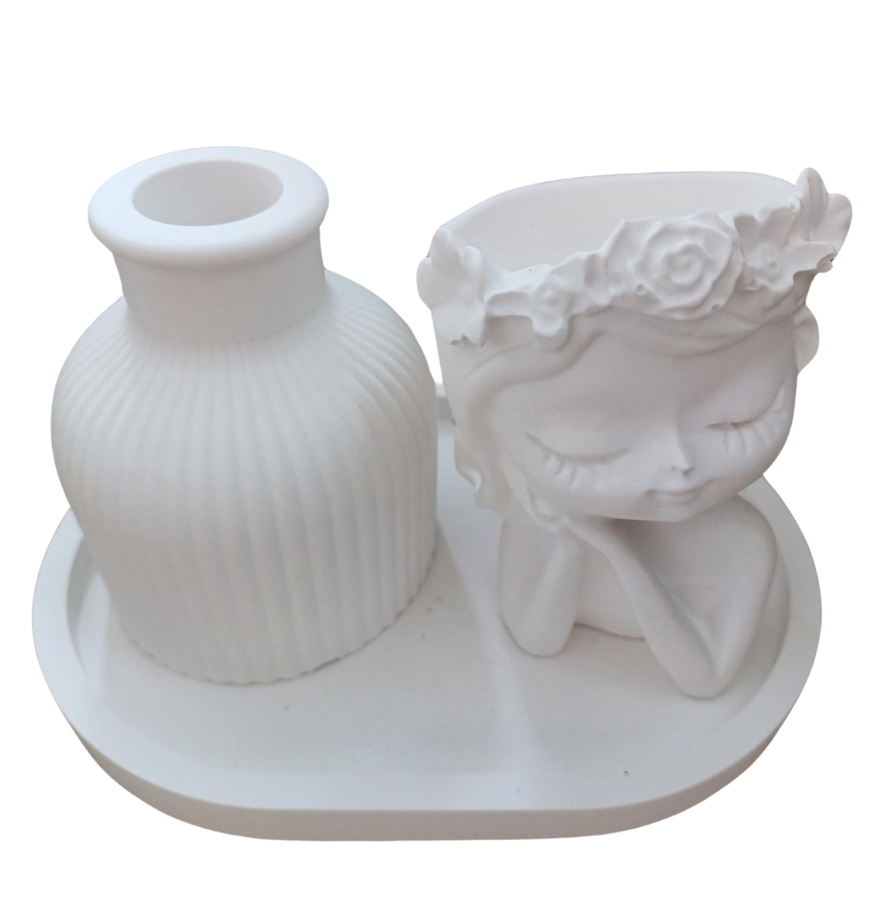 3 delig setje bestaande uit schaaltje ovaal 11x 15.5 cm vaasje met streep 8.5 x 6.5 cm en meisje 9 x 6cm.