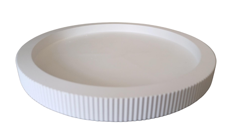 Ronde schaal met streepjes aan de rand, 23cm.