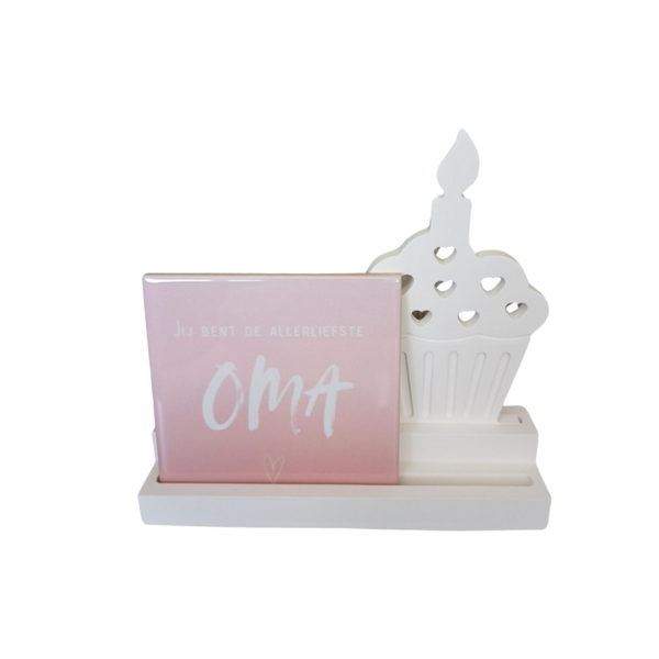 Houder voor 2 tegeltjes of in combinatie met een leuke jesmonite afbeelding, een eigen kaart of foto...