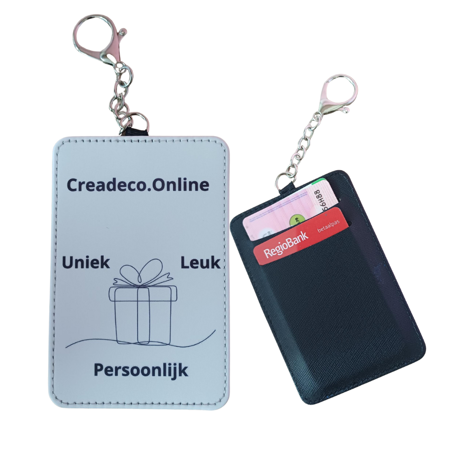 Sleutelhanger met pasjeshouder is 11.5x7.5cm