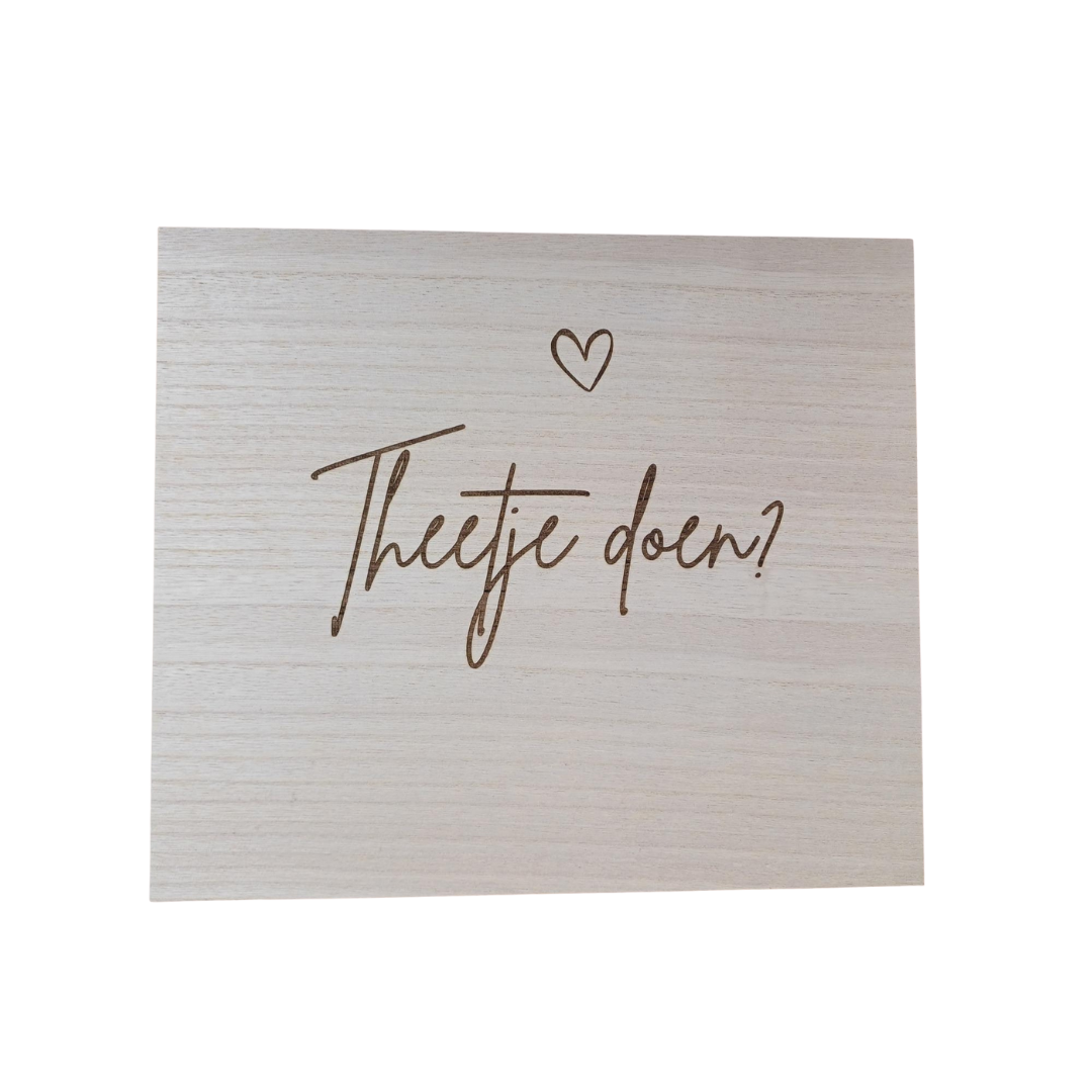 Op zoek naar een uniek en persoonlijk cadeau of een stijlvolle toevoeging aan je keuken? Deze theekist met 12 vakken is perfect om al je favoriete thee georganiseerd te bewaren. Wat deze theekist écht bijzonder maakt, is dat je hem kunt laten graveren met je eigen tekst of afbeelding. Of het nu gaat om een naam, een speciale boodschap of een eigen ontwerp, het geeft een persoonlijke en elegante touch. Ideaal als geschenk voor een verjaardag, jubileum, of gewoon om jezelf te verwennen. Combineer functionaliteit met een persoonlijk tintje en geniet van een prachtig gepresenteerde theecollectie!