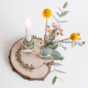 Tijdens deze 3 uur durende workshop krijg je een houtenschijf met boomschors van 30cm doorsnede. Waar je een afbeelding naar keuze op gaat houtbranden in combinatie met schilderen mogelijk.