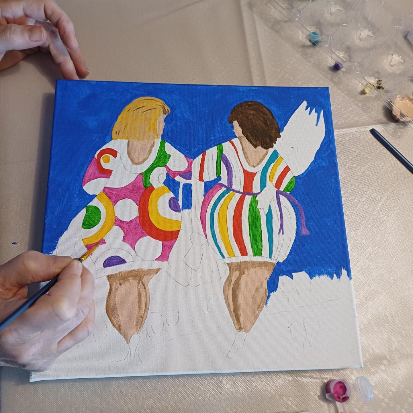 Tijdens deze 3 uur durende workshop ga je je eigen Gezellige dames canvas schilderij maken .
