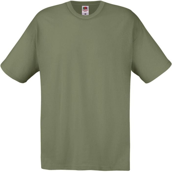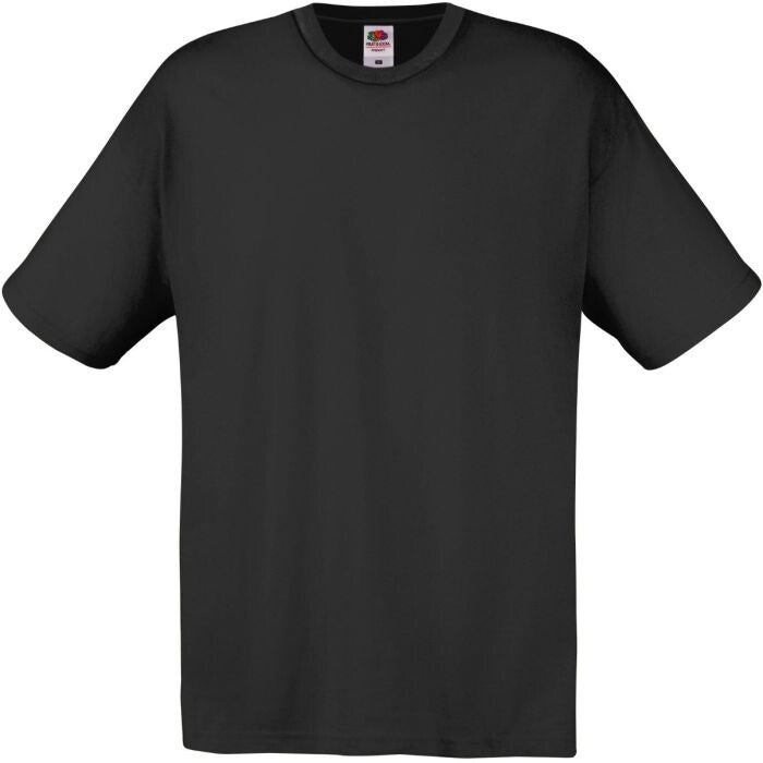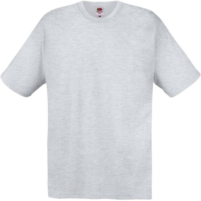 Fruit of the Loom 100% katoen (Heather grey: 97% katoen / 3% polyester). Ronde hals met nektape.