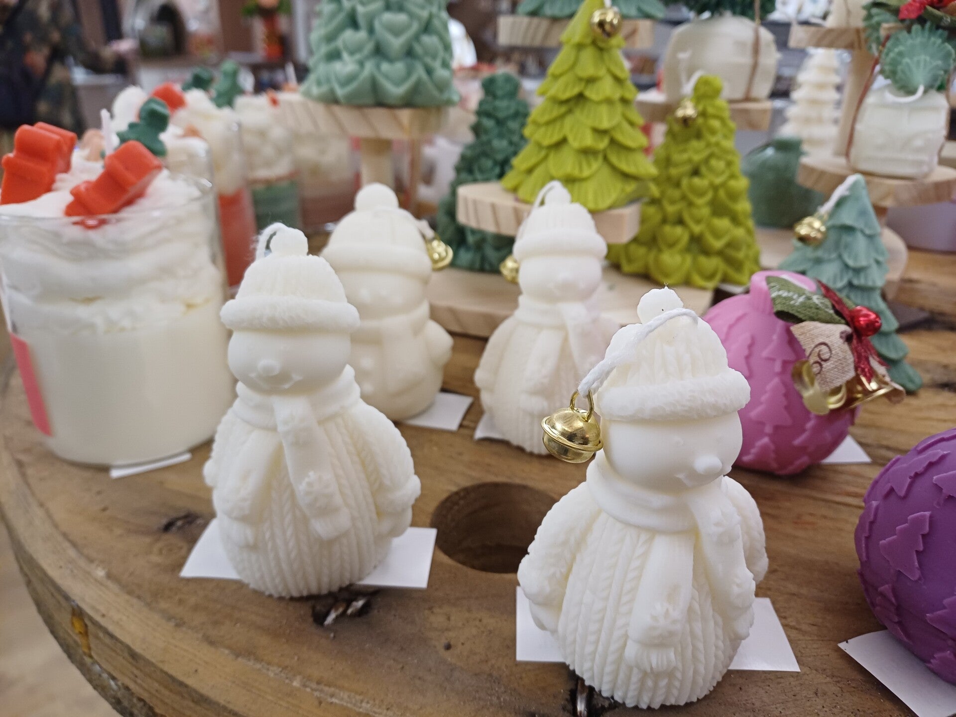 Decoratieve sneeuwpop kaars gemaakt van sojawax